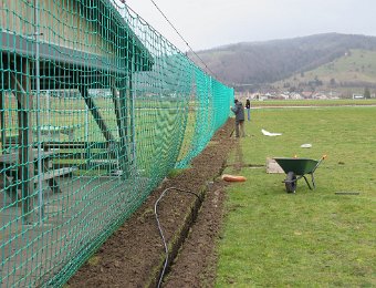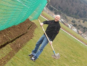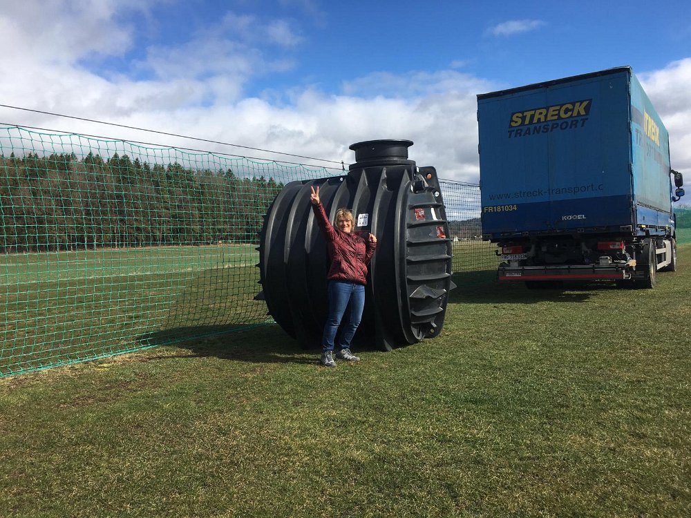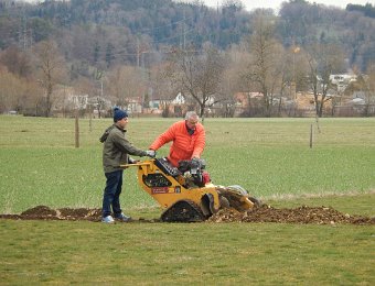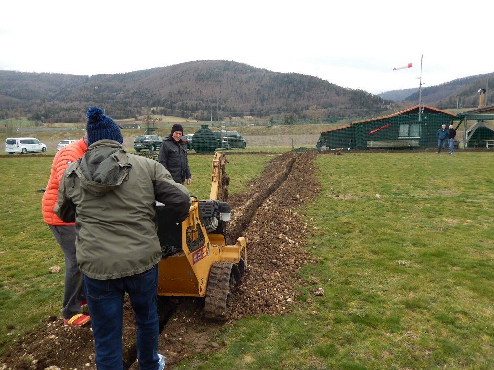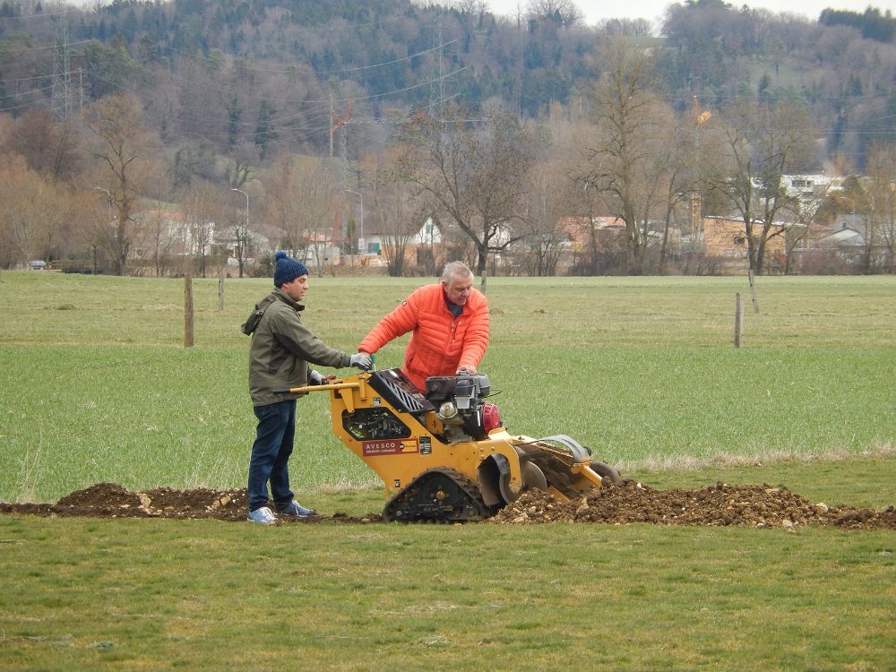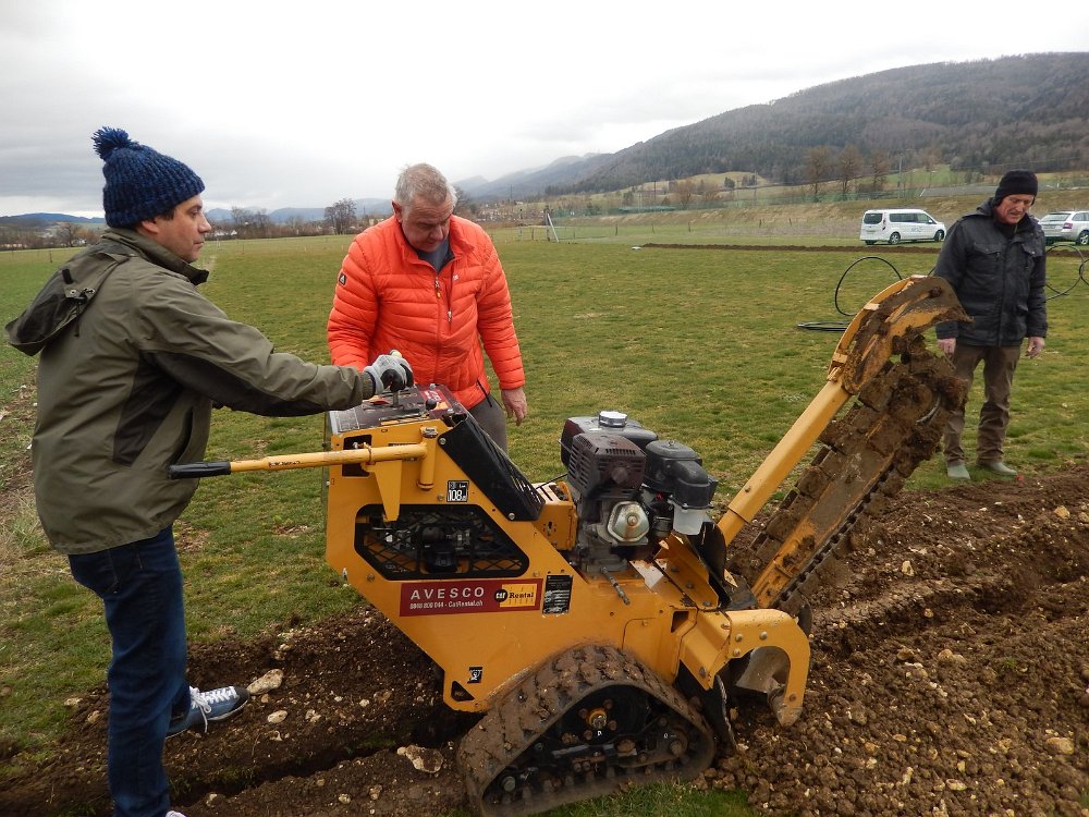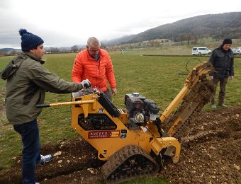 réception de la citerne le 7.3.2019ne reste plus qu'à l'installerCréation des saignées pour les tuyaux d'arrosage1ère saignée presque terminéeIl cause même en bossantDenis en train de trierPierre en en pleine action